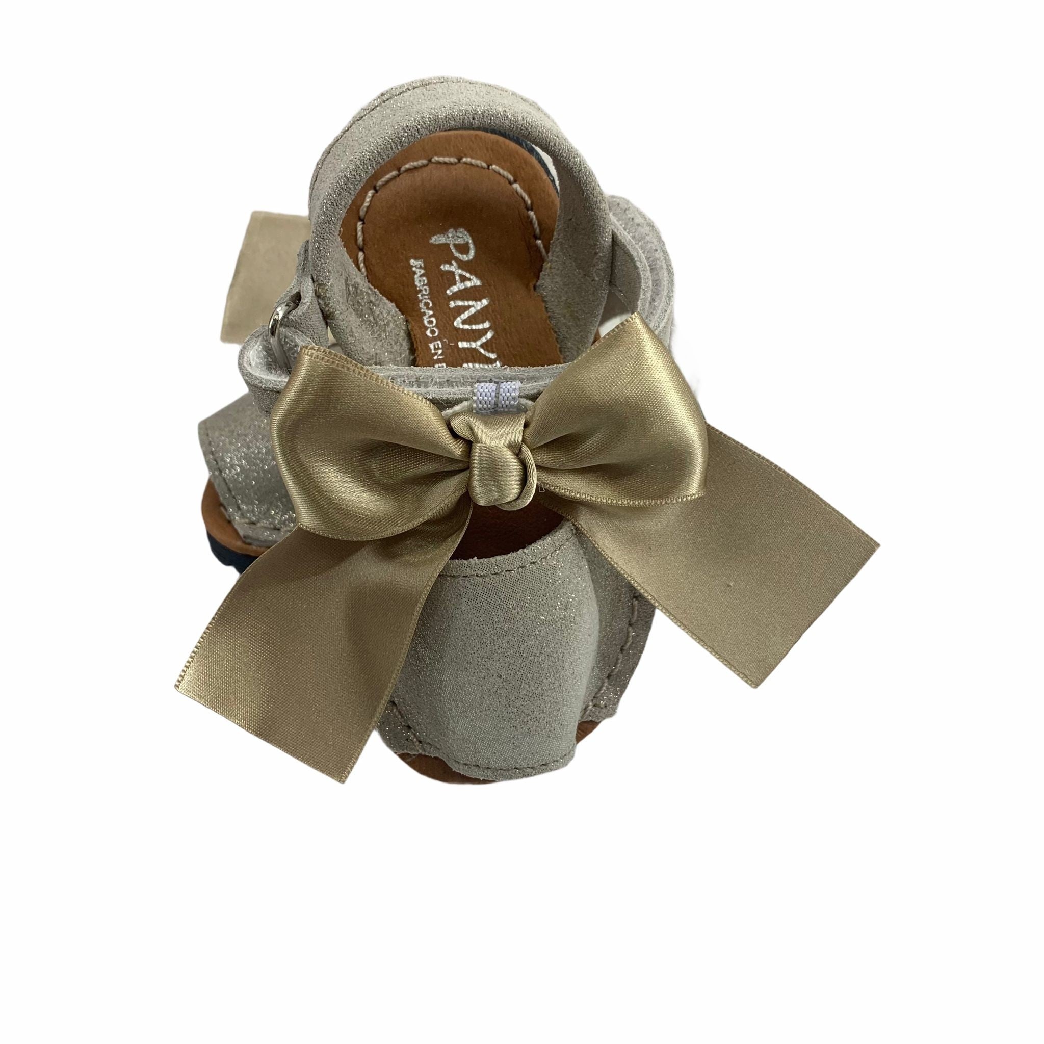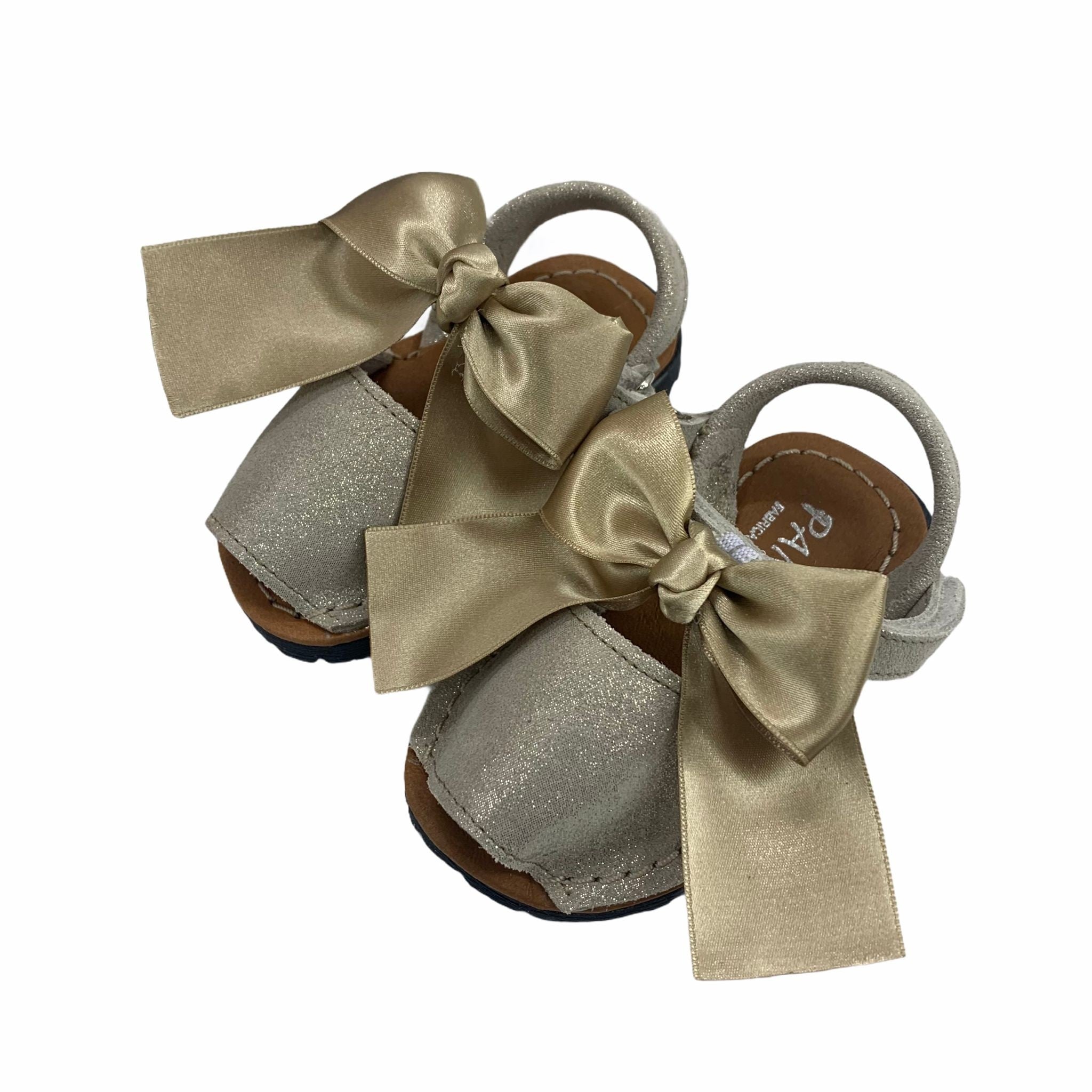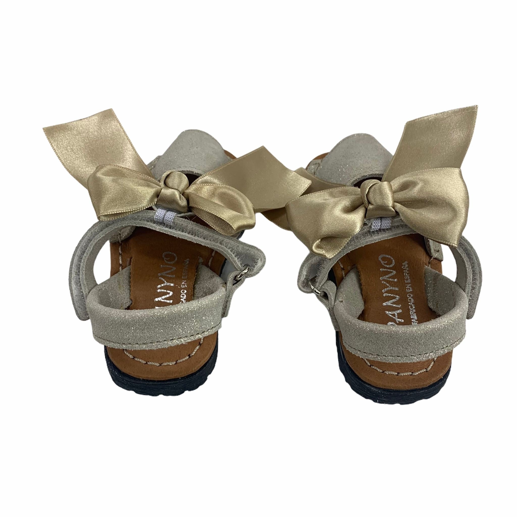 Espadrille-Sandale (Menorquinisch) Erste Schritte aus Leder, Riemenverschluss und Satinschleife (abnehmbar).