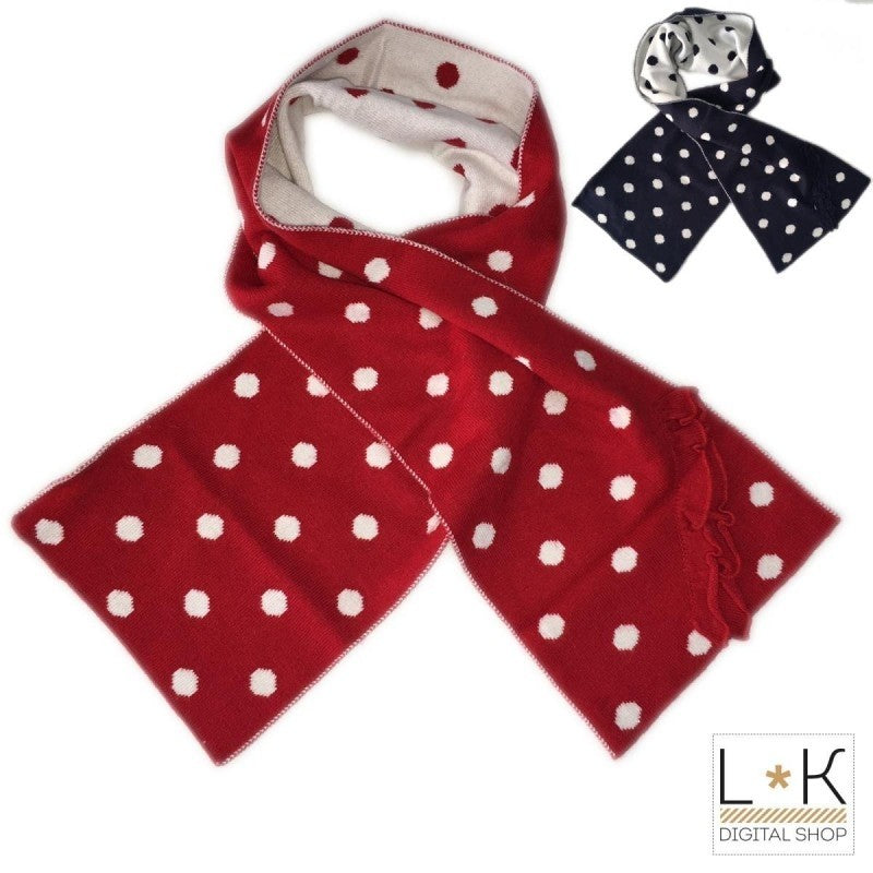 Roter Schal aus Wollmischung mit weißen Tupfen.