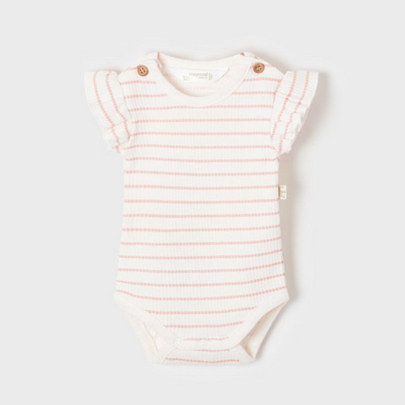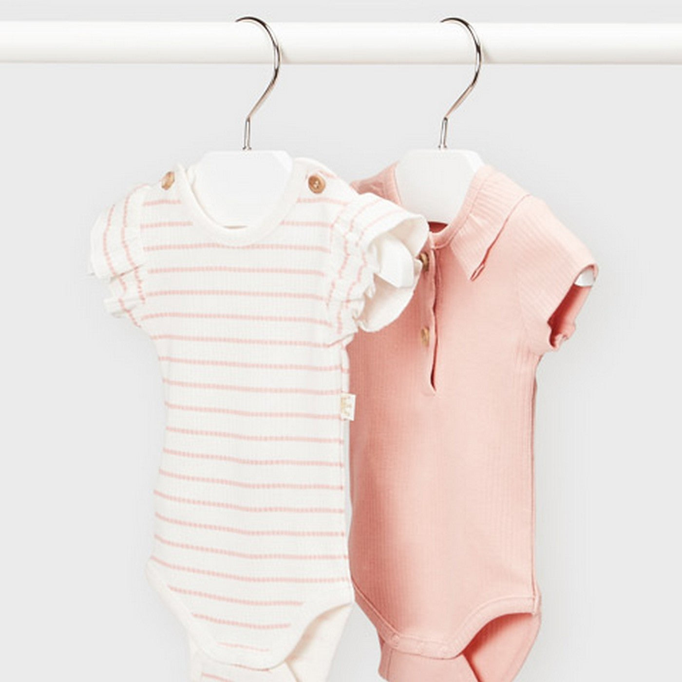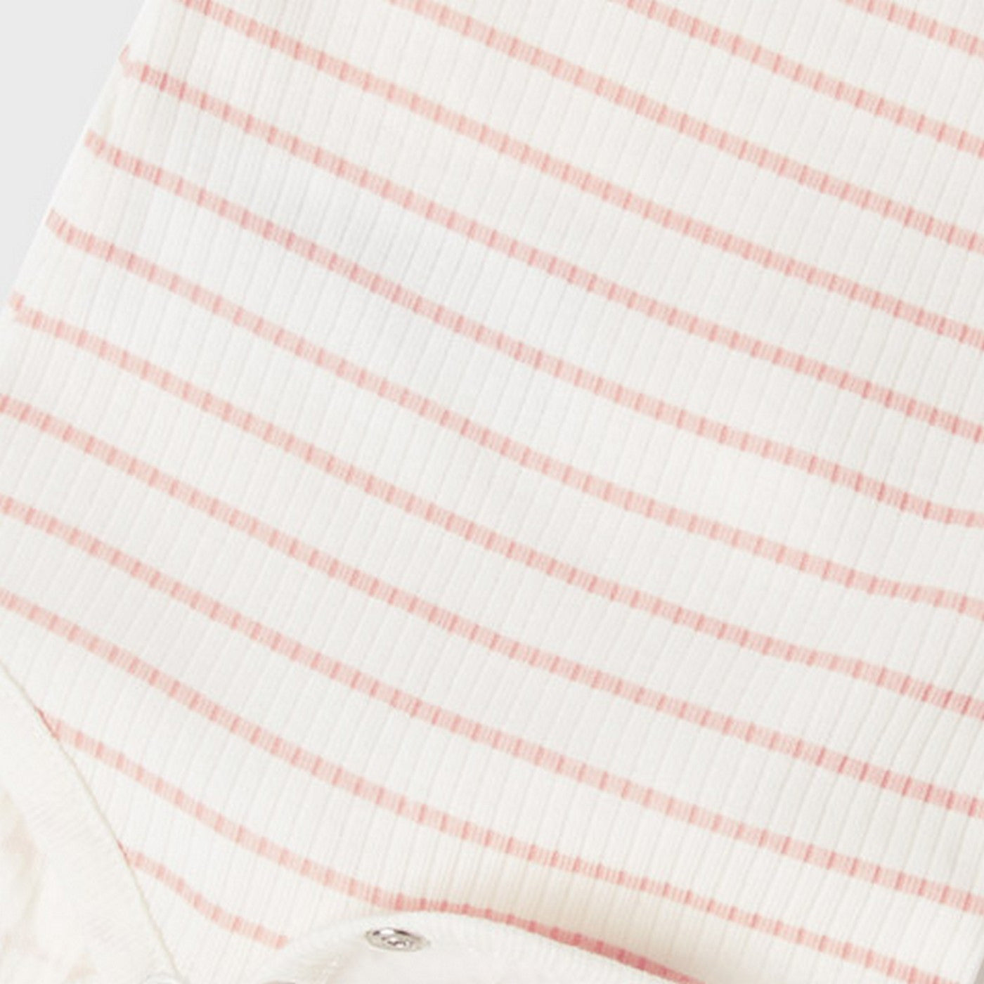 Set aus zwei Bodys für den Außenbereich, einer einfarbig mit rosa Rippen und der andere in Weiß mit rosa Streifen.