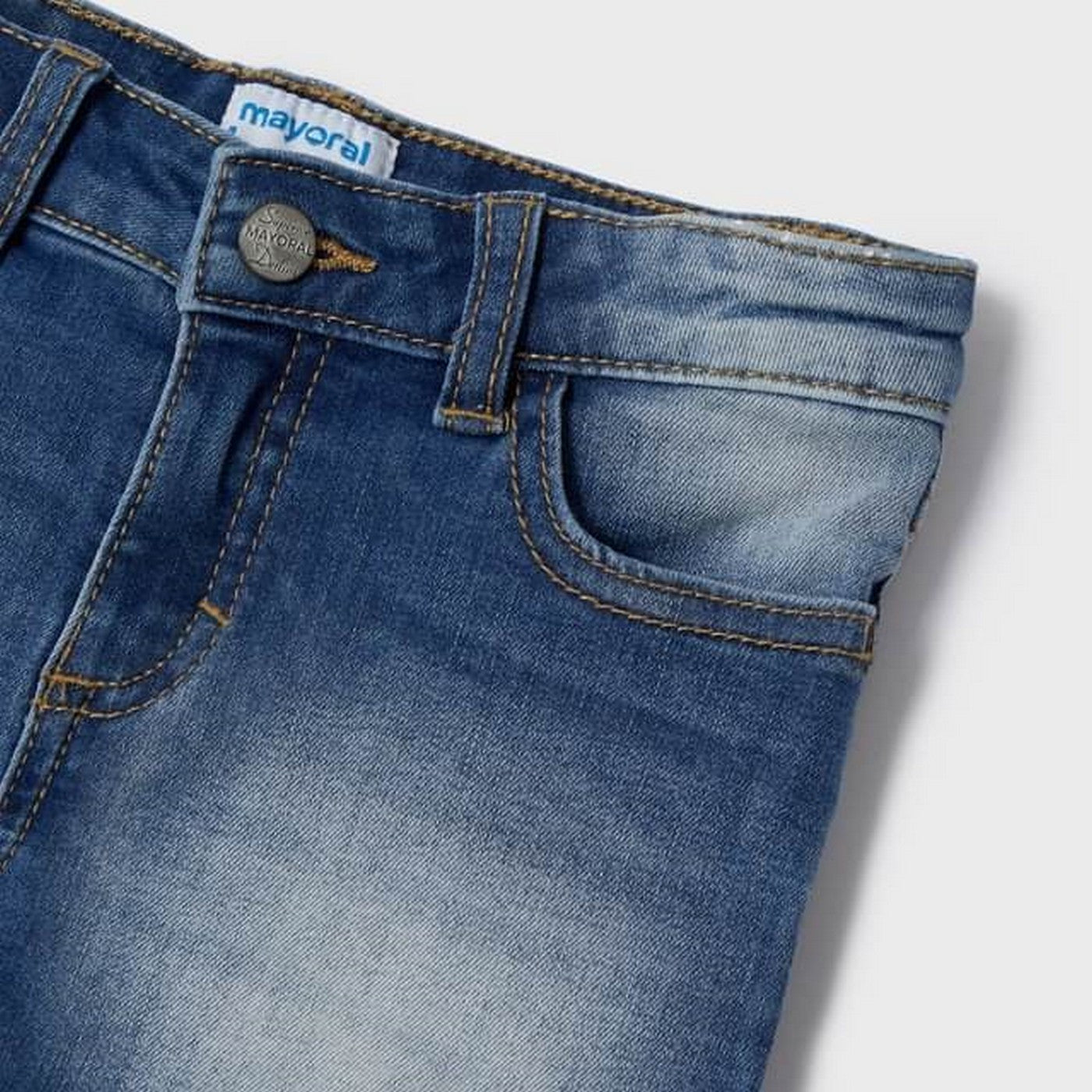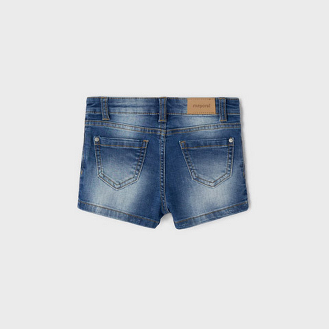 Basic-Jeansshorts mit elastischem Bund zum Anpassen der Passform.