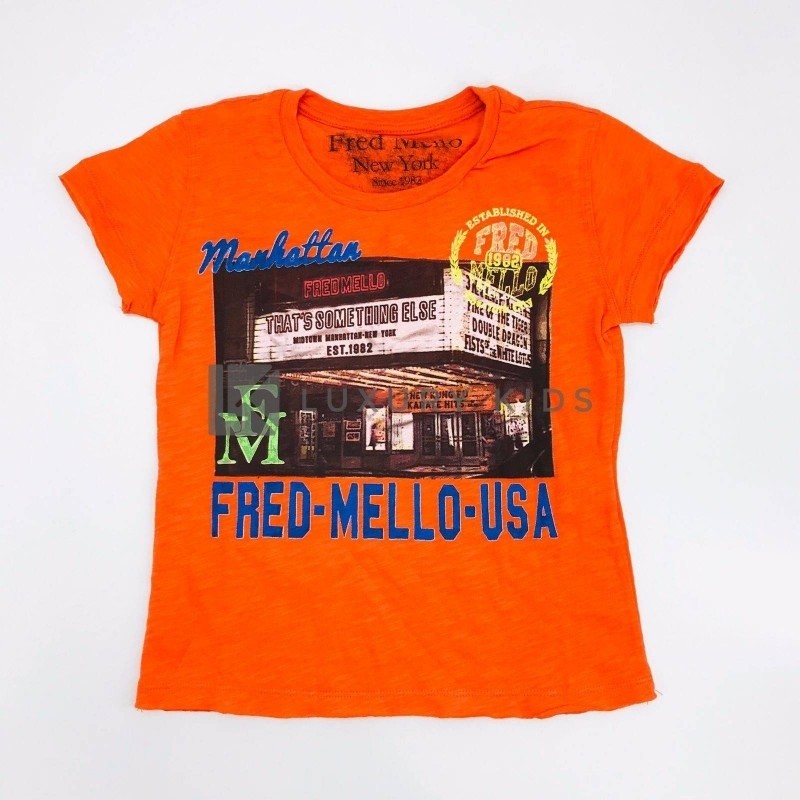 Einfarbiges orangefarbenes Baumwoll-T-Shirt mit Aufdruck auf der Brust