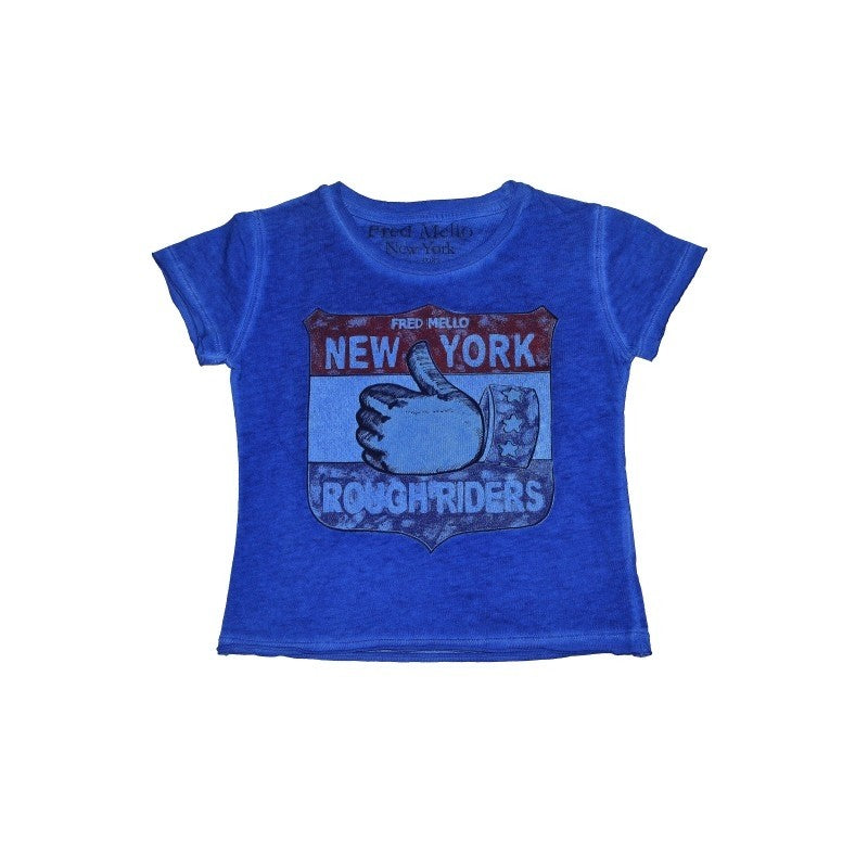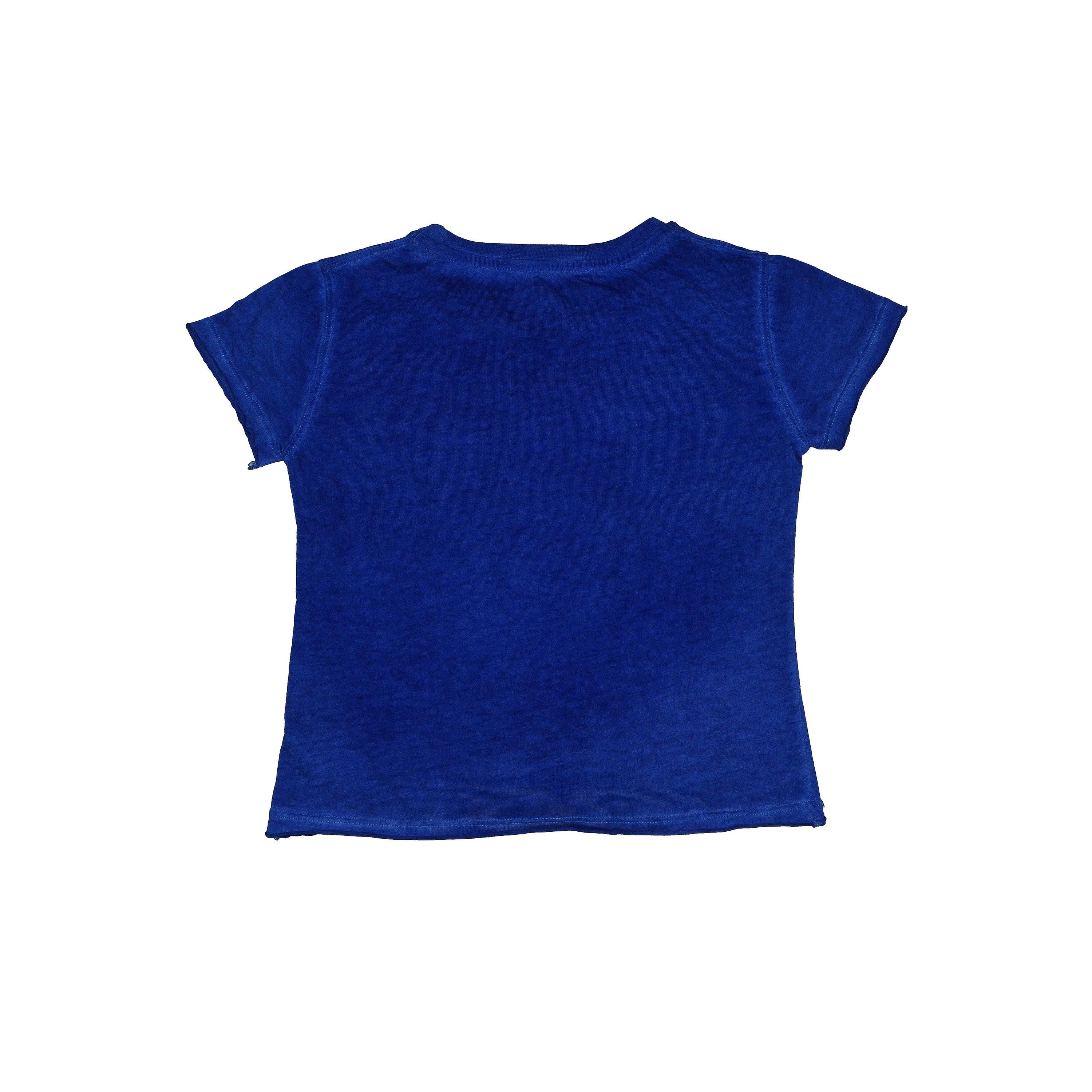 Einfarbiges blaues Baumwoll-T-Shirt mit Brustdruck