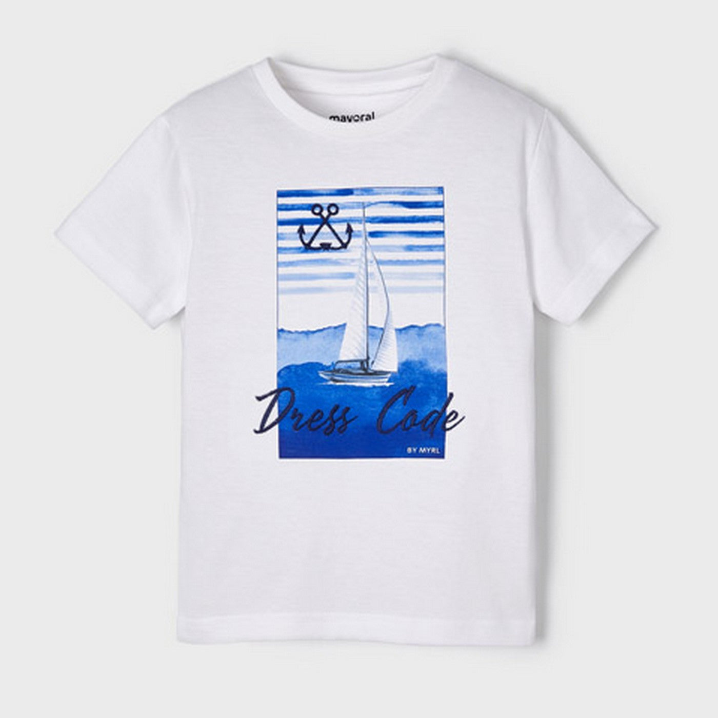 Weißes bedrucktes T-Shirt aus Baumwolle.