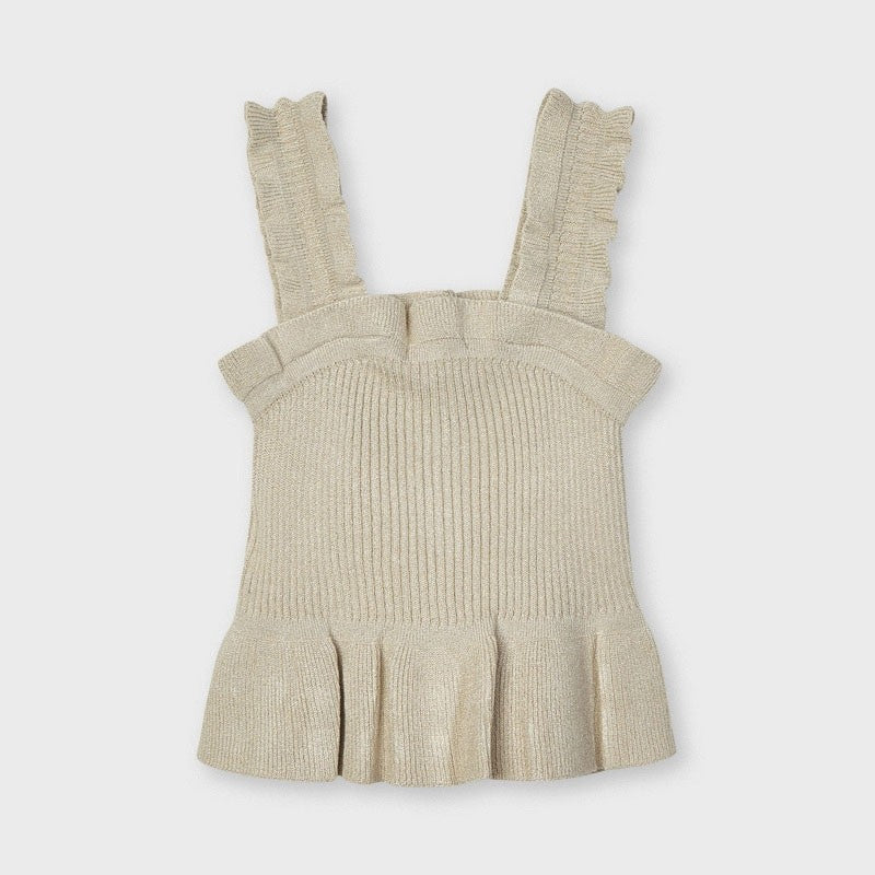 Oberteil aus goldfarbenem Lurex-Baumwollgarn, gerippt.