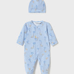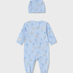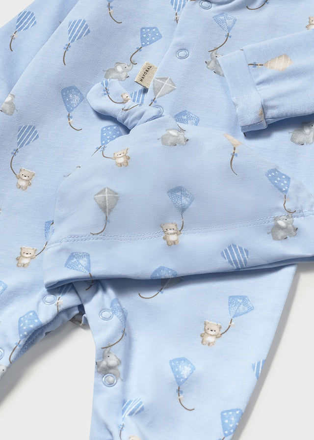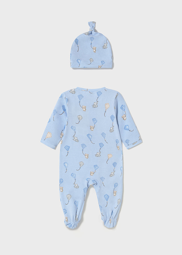 Pagliaccetto manica lunga per neonato. Pagliaccetto con piedini. Chiusura con bottoni nella parte anteriore. Chiusura con bottoni nell'interno cosce. Design stampato.Dolce cappello per neonato. Scegliendo i nostri prodotti in cotone, supporti il nostro impegno nell'iniziativa Better Cotton.