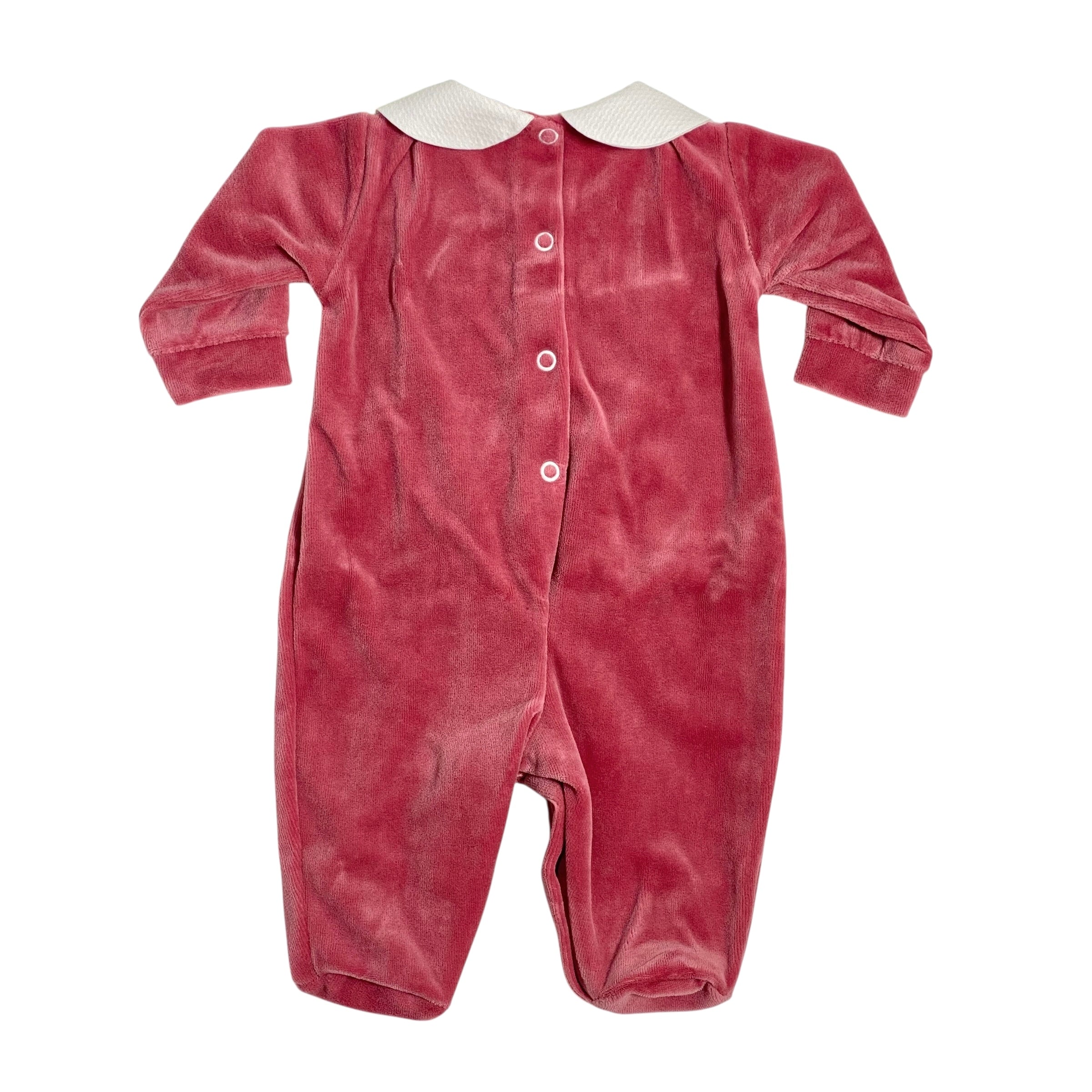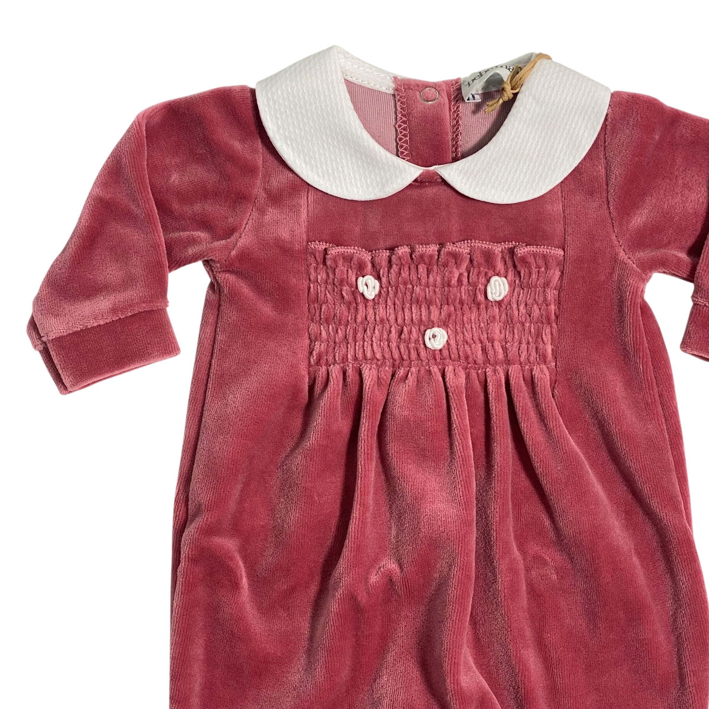 Questa raffinata tutina intera in ciniglia è adatta ai primi giorni di vita della tua neonata. Con eleganti dettagli ricamati, è perfetta per la clinica o per i primi appuntamenti fuori casa. Assicura il massimo comfort e stile per la tua piccola.