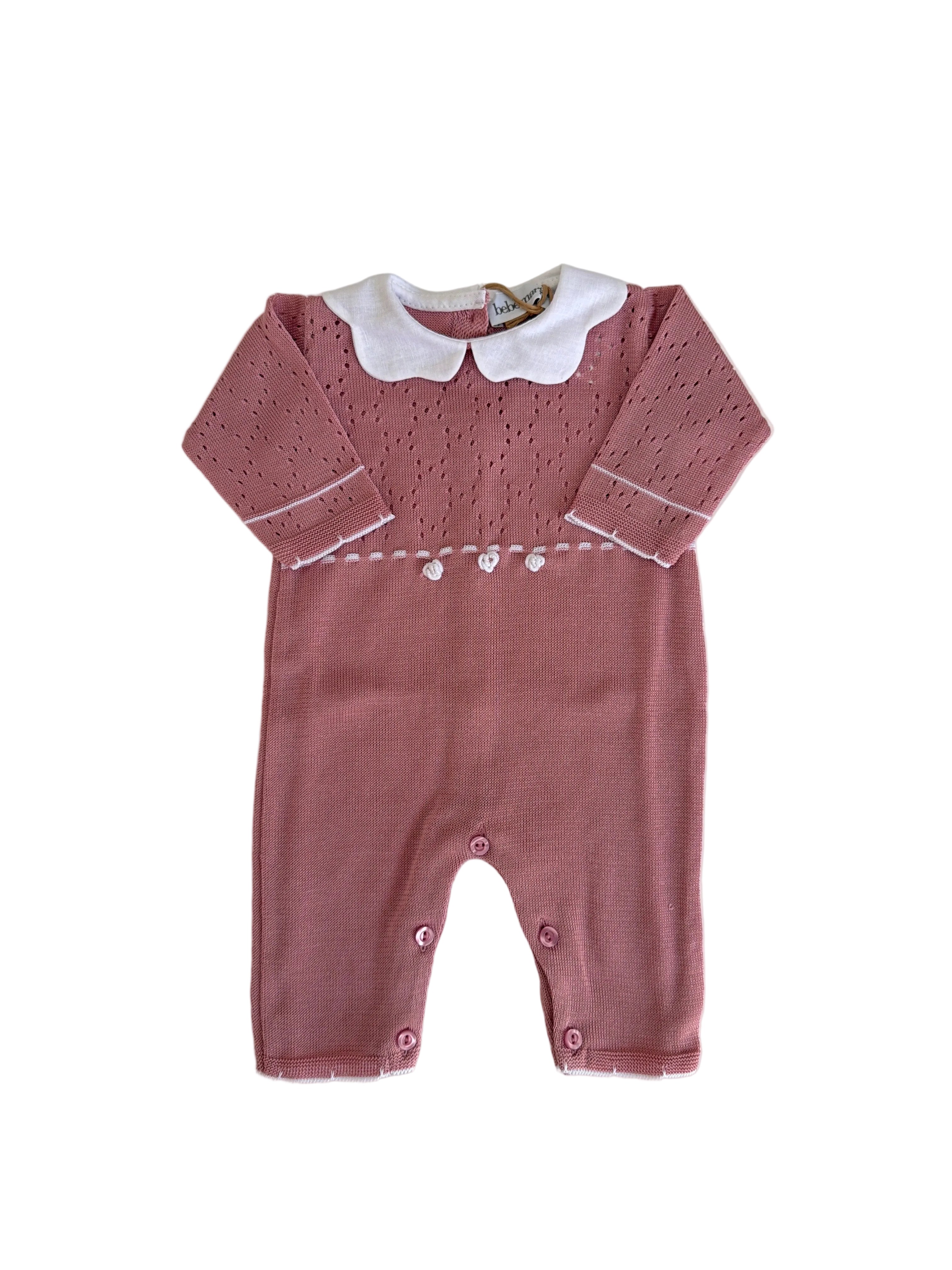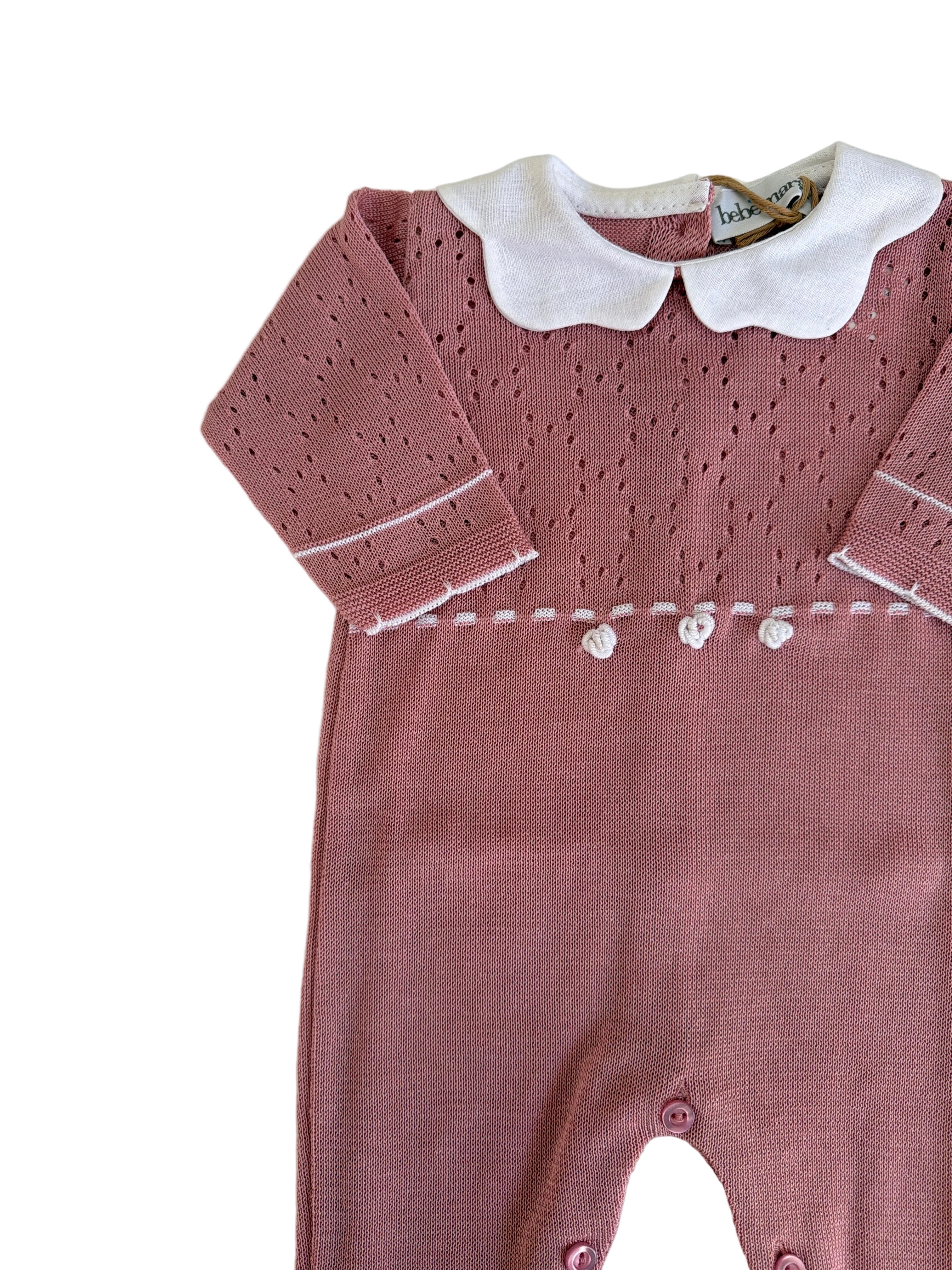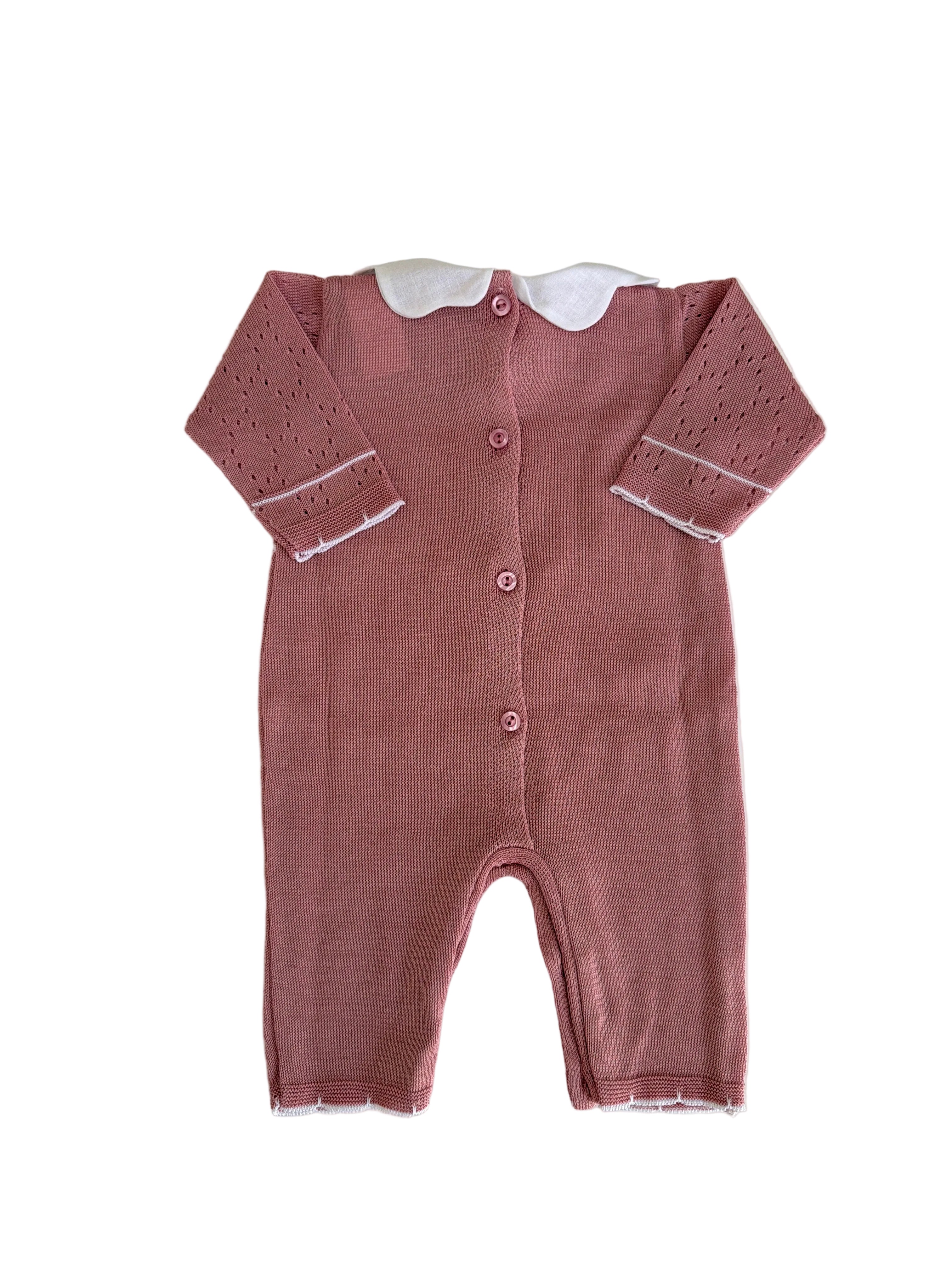 Delicata tutina intera in puro cotone per neonata, caratterizzata da un elegante colletto a fiore che aggiunge un tocco di raffinatezza. Perfetta per occasioni speciali o per il quotidiano, garantisce comfort e morbidezza sulla pelle sensibile del bebè. Facile da indossare e da lavare, è l'essenziale di lusso per il guardaroba della tua piccola.