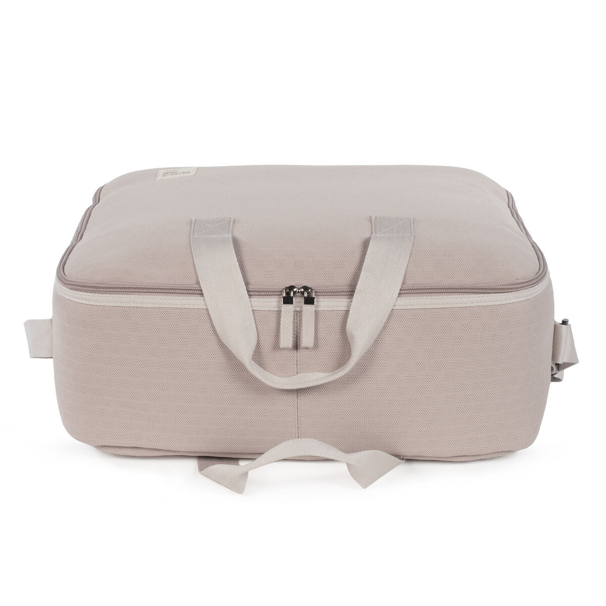 Der Eco Mum Cloud Babykoffer besteht aus rPET (post-consumer recyceltem Polyester). Das von uns verwendete rPET wird aus recyceltem PET-Kunststoff aus Wasserflaschen hergestellt. Der Einsatz dieses Materials reduziert den Wasserverbrauch, den Energieverbrauch und den CO2-Ausstoß. Es handelt sich um eine Tasche, die speziell für den wichtigsten Moment der Schwangerschaft, die Geburt Ihres Babys, entwickelt wurde, einen Moment, in dem es so viele Dinge vorzubereiten gilt. Deshalb brauchen Sie einen bequemen Platz, um alles zu transportieren, was Sie, die Eltern und das Kind brauchen. Es ist bequem, leicht und handlich, mit rechteckigen Abmessungen und praktischer Öffnung, um alle Ihre Bedürfnisse zu erfüllen. Es verfügt über einen sicheren Reißverschluss in beide Richtungen, der das Öffnen erleichtert. Inklusive langem Schultergurt zum Tragen über der Schulter und kurzen Henkeln. Darüber hinaus ist das Innenfach mit einem abgestimmten Futter mit Gummibändern ausgestattet, um Kleidung aufzunehmen und alles an Ort und Stelle zu halten. Tolle Qualität und viel Stil. Aus widerstandsfähigem Material gefertigt und leicht per Hand oder in der Waschmaschine bei 30°C zu reinigen.
